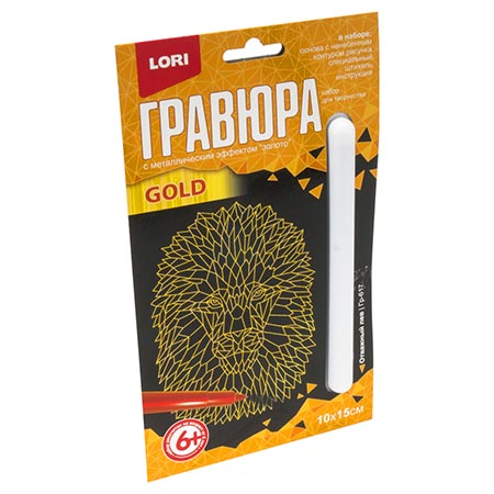 Гравюра " Lori " 10*15см с эффектом золота Отважный лев, основа с контуром рисунка, штихель, инструкция