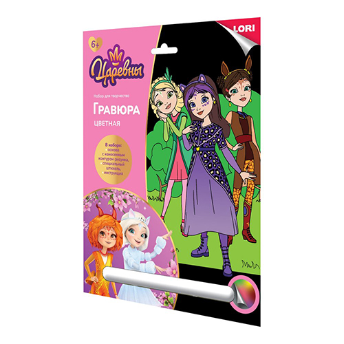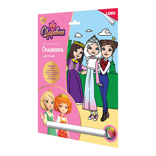 Гравюра " Lori " Царевны 18*24см с цветной основой Царевны Аленка, Дарья и Соня, основа с контуром рисунка, штихель, инструкция