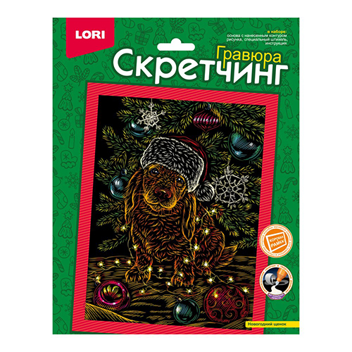 Гравюра " Lori " 18*24см Новогодний щенок, основа с контуром рисунка, штихель, инструкция