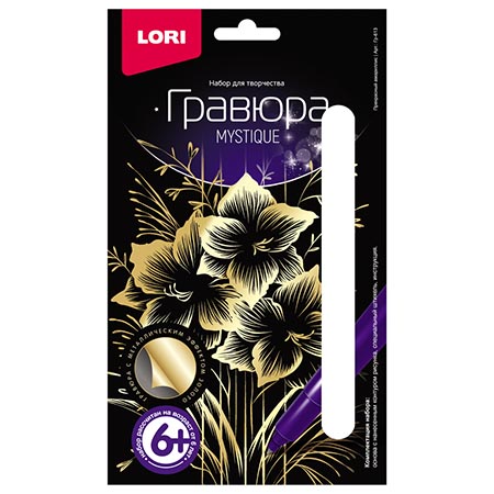 Гравюра " Lori " 10*15см с эффектом золота Прекрасный амариллис, основа с контуром рисунка, штихель, инструкция