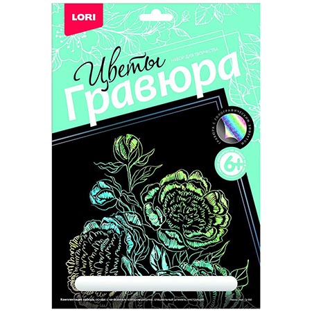 Гравюра " Lori " 18*24см с эффектом голографии Пионы, основа с контуром рисунка, штихель, инструкция