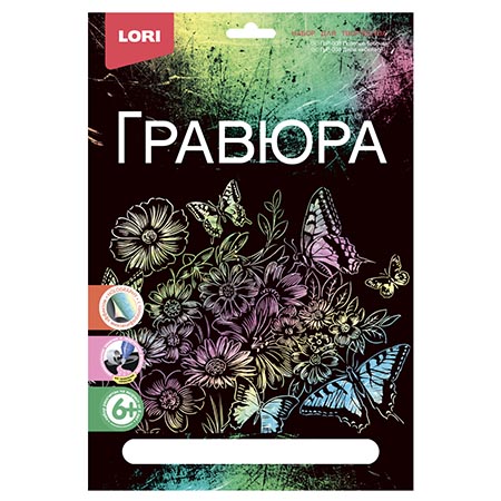 Гравюра " Lori " 18*24см с эффектом голографии Полевые бабочки, основа с контуром рисунка, штихель, инструкция
