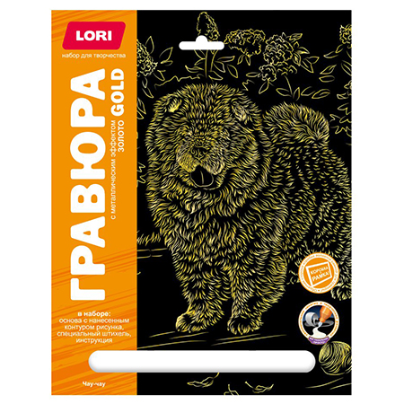 Гравюра " Lori " 18*24см с эффектом золота Собаки. Чау-чау, основа с контуром рисунка, штихель, инструкция