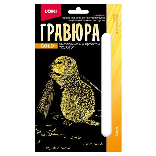 Гравюра " Lori " 10*15см с эффектом золота Суслик, основа с контуром рисунка, штихель, инструкция
