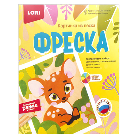 Картина из песка " Lori " Фреска Маленький оленёнок, 9 цветов, цветной песок,самоклеящаяся основа,рамка,инструкция на упаковке