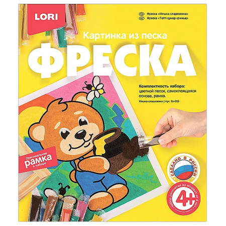 Картина из песка " Lori " Фреска Мишка сладкоежка, 12 цветов, цветной песок, самоклеющаяся основа в рамке