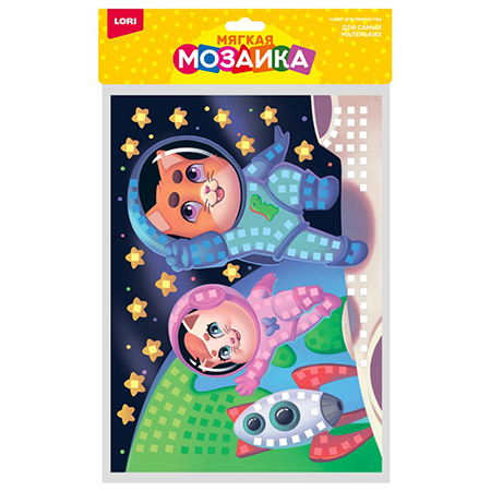 Мозаика увлекательная " Lori " Космонавты, А5, самоклеящиеся цветные детали, на картоне, пакет, европодвес