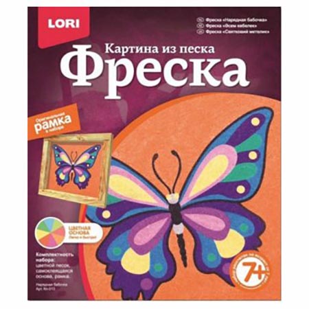 Картина из песка " Lori " Фреска Пестрая бабочка, 12 цветов, цветной песок, самоклеющаяся основа в рамке