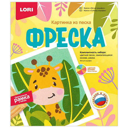 Картина из песка " Lori " Фреска Милый жирафик, 9 цветов, цветной песок,самоклеящаяся основа,рамка,инструкция на упаковке
