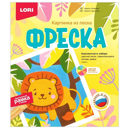 Картина из песка " Lori " Фреска Львёнок, 9 цветов, цветной песок,самоклеящаяся основа,рамка,инструкция на упаковке