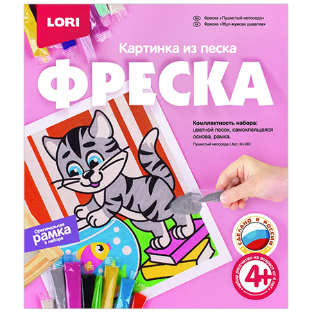 Картина из песка " Lori " Фреска Пушистый непоседа, цветной песок, самоклеющаяся основа в рамке