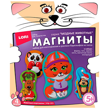 Фигурки на магнитах " Lori " Животные спортсмены, формы, гипс, акварельные краски, кисть, магнитная лента, инструкция