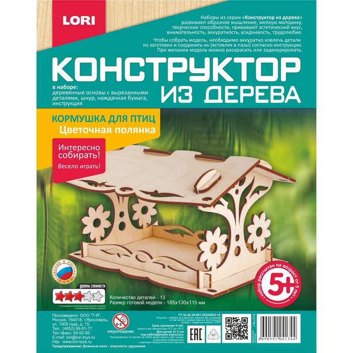 Конструктор из дерева. Кормушка для птиц «Цветочная полянка»