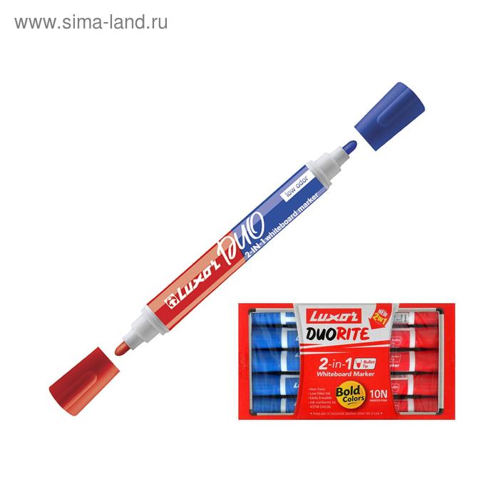 Маркер для белых досок Luxor Duorite, 1-3 мм, двусторонний, пулевидный, синий/красный