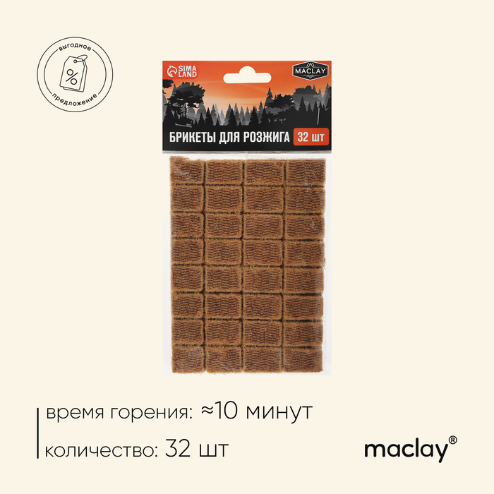Брикеты для розжига Maclay, 32 шт.