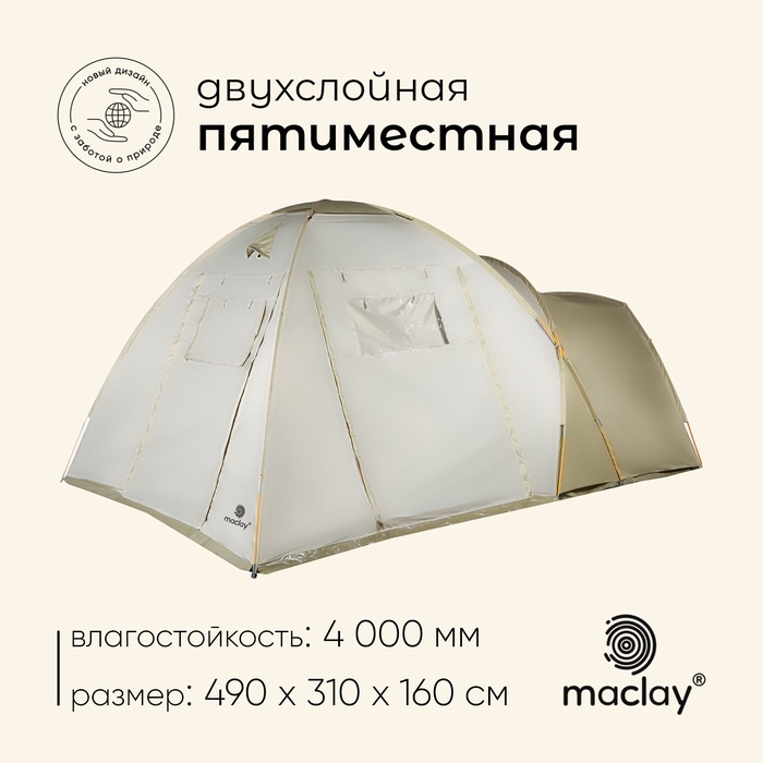 Палатка туристическая, кемпинговая maclay karelia cool 5, 5-местная, с тамбуром