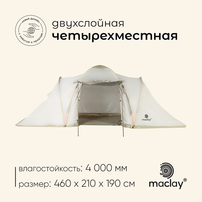 Палатка туристическая, кемпинговая maclay enisey cool 4, 4-местная, с тамбуром