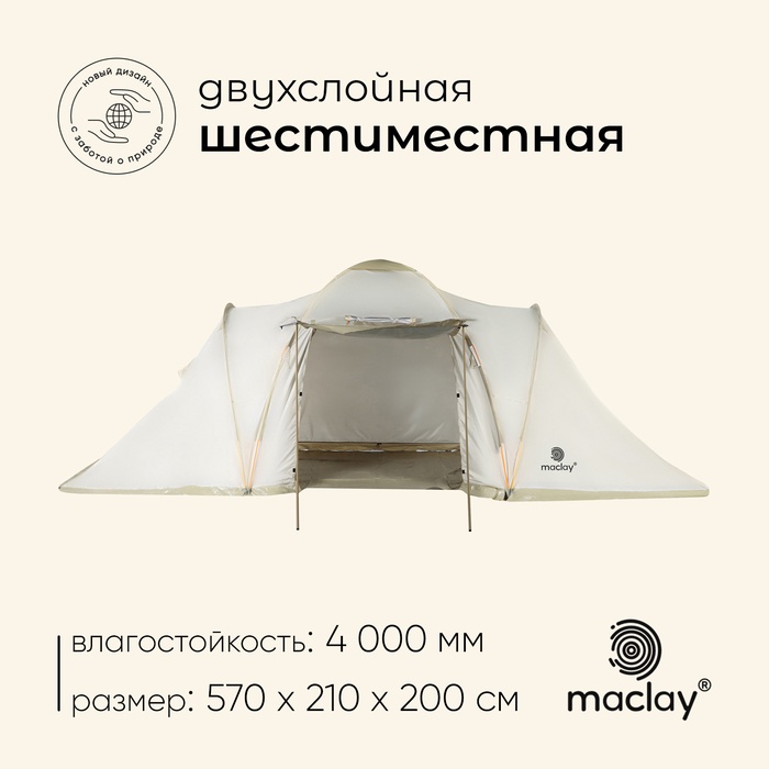 Палатка туристическая, кемпинговая maclay enisey cool 6, 6-местная, с тамбуром