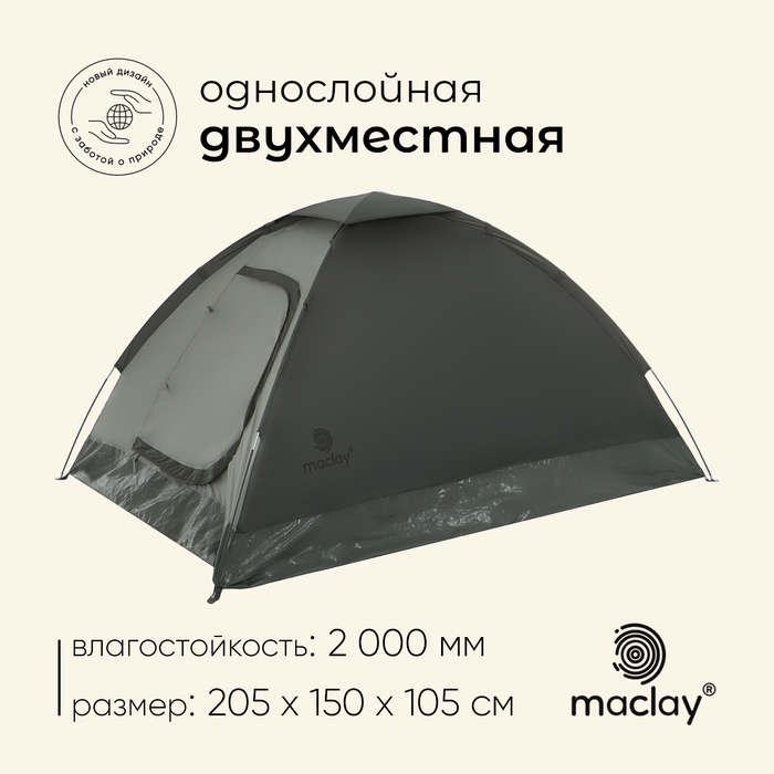 Палатка туристическая, трекинговая maclay kama 2, 2-местная, с тамбуром