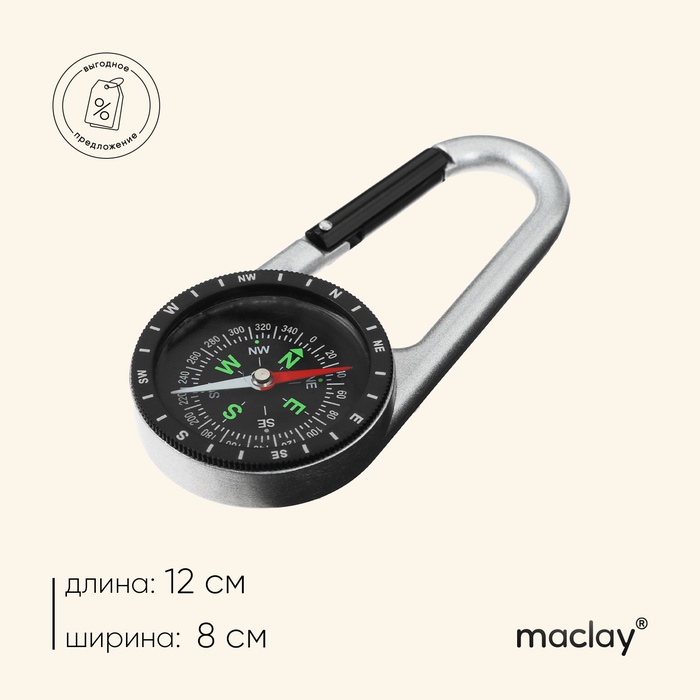 Компас Maclay 2603, с карабином, d=3 см, цвет МИКС