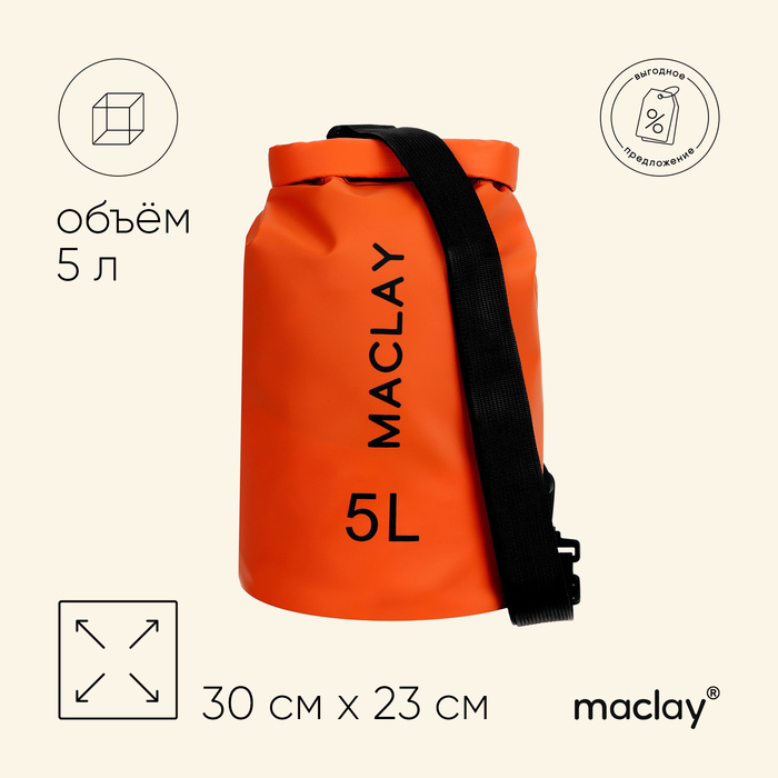 Гермомешок туристический maclay, 5 л, 500D, цвет оранжевый