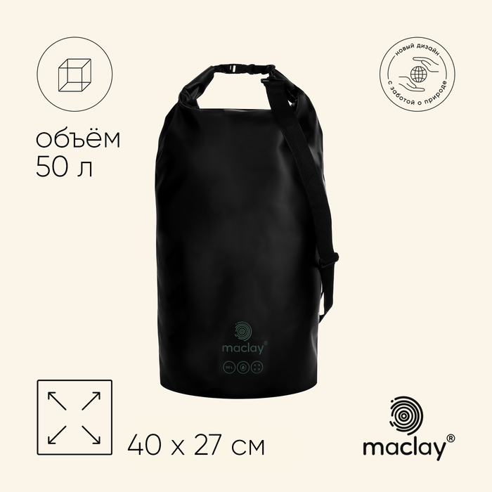 Гермомешок туристический maclay, 50 л, 500D, цвет чёрный