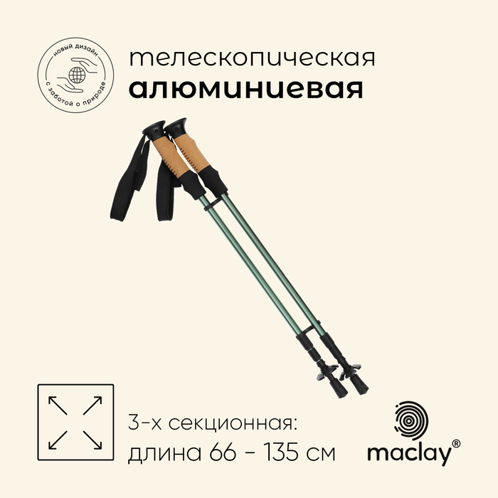 Палки треккинговые Maclay, телескопические, 3-х секционные, до 135 см (2 шт), ПОЛНЫЙ НАБОР 1082322