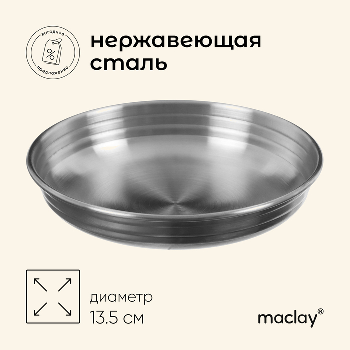Миска походная Maclay, глубокая, d=13.5 см, нержавеющая сталь