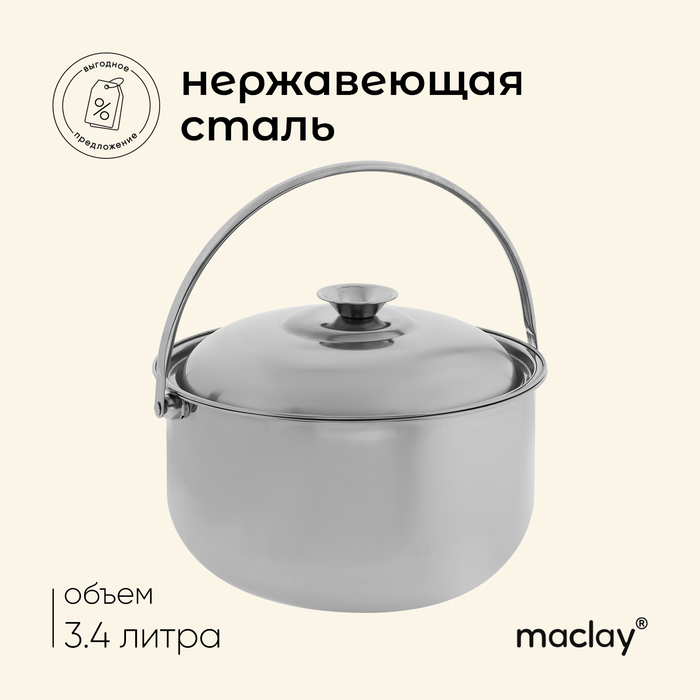 Котелок походный Maclay, 24 см, с крышкой, нержавеющая сталь