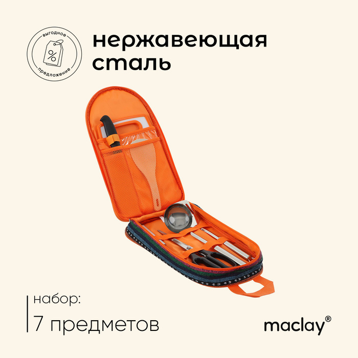 Набор для пикника Maclay: доска, 2 лопатки, ножницы, половник, вилка, нож