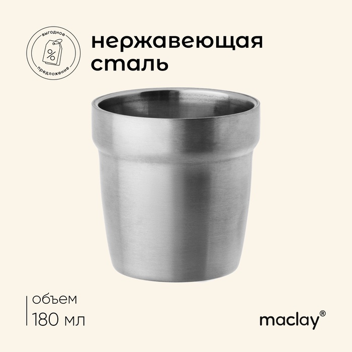 Стакан походный Maclay, 180 мл, нержавеющая сталь, двойное дно