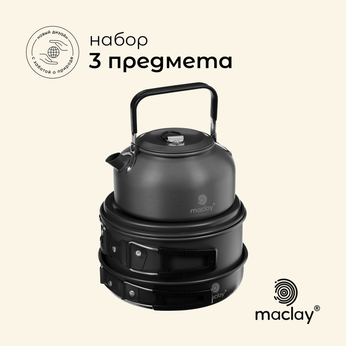Набор туристической посуды Maclay: чайник, кастрюля, сковорода, 3 чашки, черпак, лопатка, губка