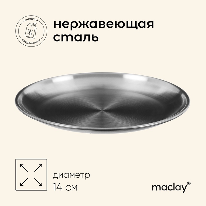 Тарелка походная Maclay, d=14 см, нержавеющая сталь