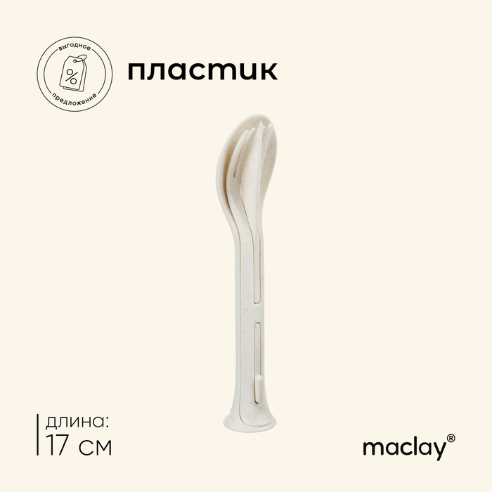 Набор столовых приборов Maclay: ложка, вилка, нож, пластик, цвет бежевый