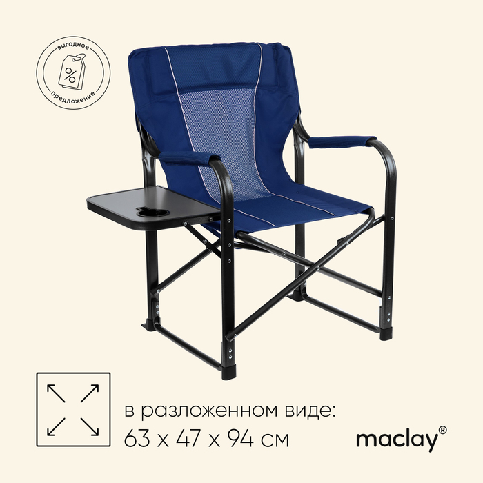 Кресло туристическое Maclay, стол с подстаканником, 63х47х94 см, цвет синий