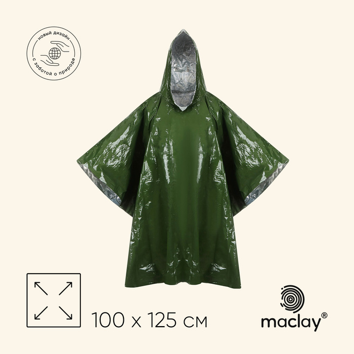 Дождевик Maclay, фольгированный, 100х125 см, цвет хаки