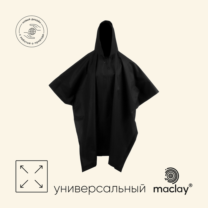 Дождевик - пончо maclay, р. универсальный, цвет чёрный