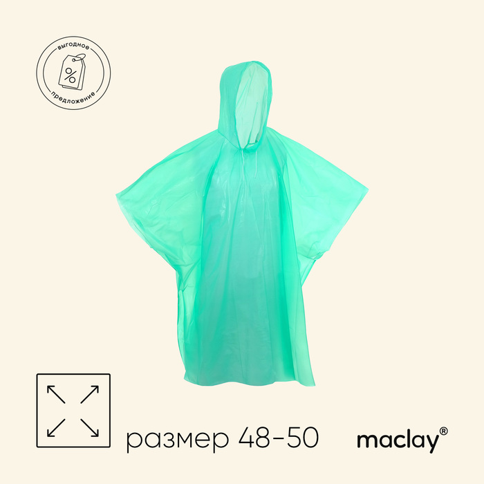 Дождевик - пончо maclay, р. универсальный, цвет зелёный
