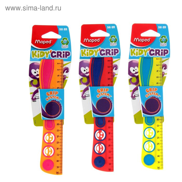 Линейка 20 см, Maped Kidi Grip, цветная, эко-дизайн, европодвес, микс