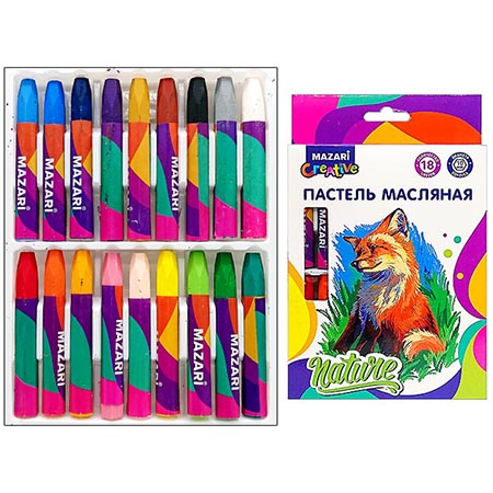Пастель " Mazari " 18цв 73мм масляная, шестигранный корпус, картонная упаковка, европодвес