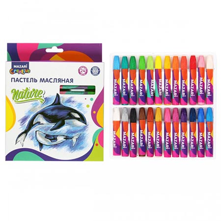 Пастель " Mazari " 24цв 73мм масляная, шестигранный корпус, картонная упаковка, европодвес