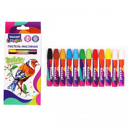 Пастель " Mazari " 12цв 73мм масляная, шестигранный корпус, картонная упаковка, европодвес