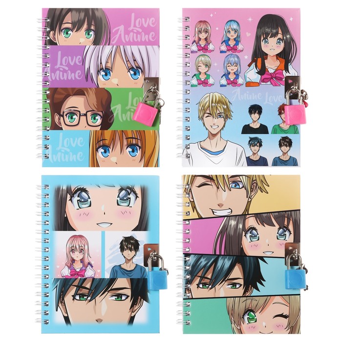 Блокнот 48 листов в клетку (11 х 15 см) Mazari "АНИМЕ", с замочком, 70 г/м2, 4 дизайна МИКС