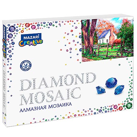 Картина алмазная " Mazari " 40*50см Деревенские мотивы, состав набора: холст на подрамнике, стразы, стилус, желеобразный клей, лоток для страз, крепеж, карта цветов, запасные пакетики для хранения страз, полная выкладка, картонная упаковка