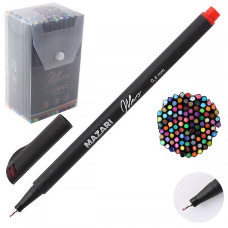 Набор линеров для скетченга " Mazari " 100цв Mero, 0,4мм, чернила на водной основе, пластиковый круглый корпус, вентилируемый колпачок, ПВХ упаковка