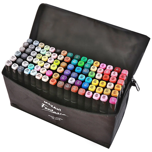 Набор маркеров для скетчинга " Mazari " 80цв Fantasia, двухсторонние, 3,0-6,2мм, пулевидный/скошенный, квадратный корпус, текстильный чехол на молнии