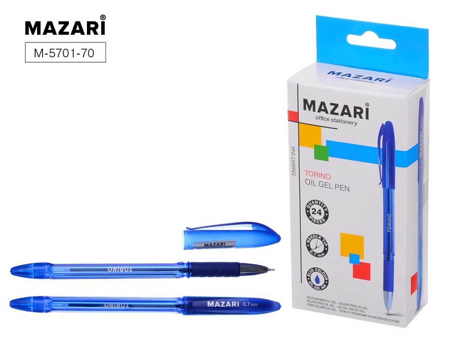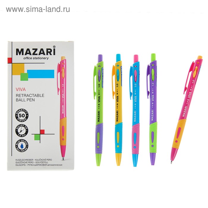 Ручка шариковая автоматическая Mazari Viva, 1.0 мм, резиновый упор, синяя, корпус МИКС