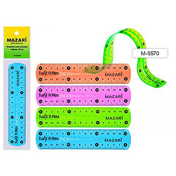 Линейка " Mazari " гибкая 15см пластиковая, ассорти 4 цвета, пакет, европодвес