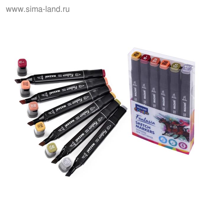Маркеры для скетчинга двусторонние Mazari Fantasia, 6 цветов, Wood colors (оттенки дерева)