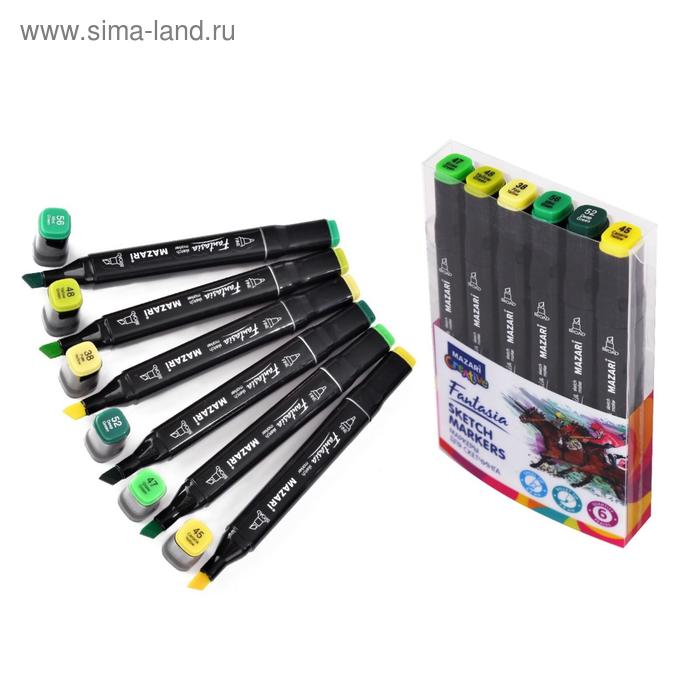 Набор двухсторонних маркеров для скетчинга Mazari Fantasia, 6 цветов Green colors (зеленые цвета)